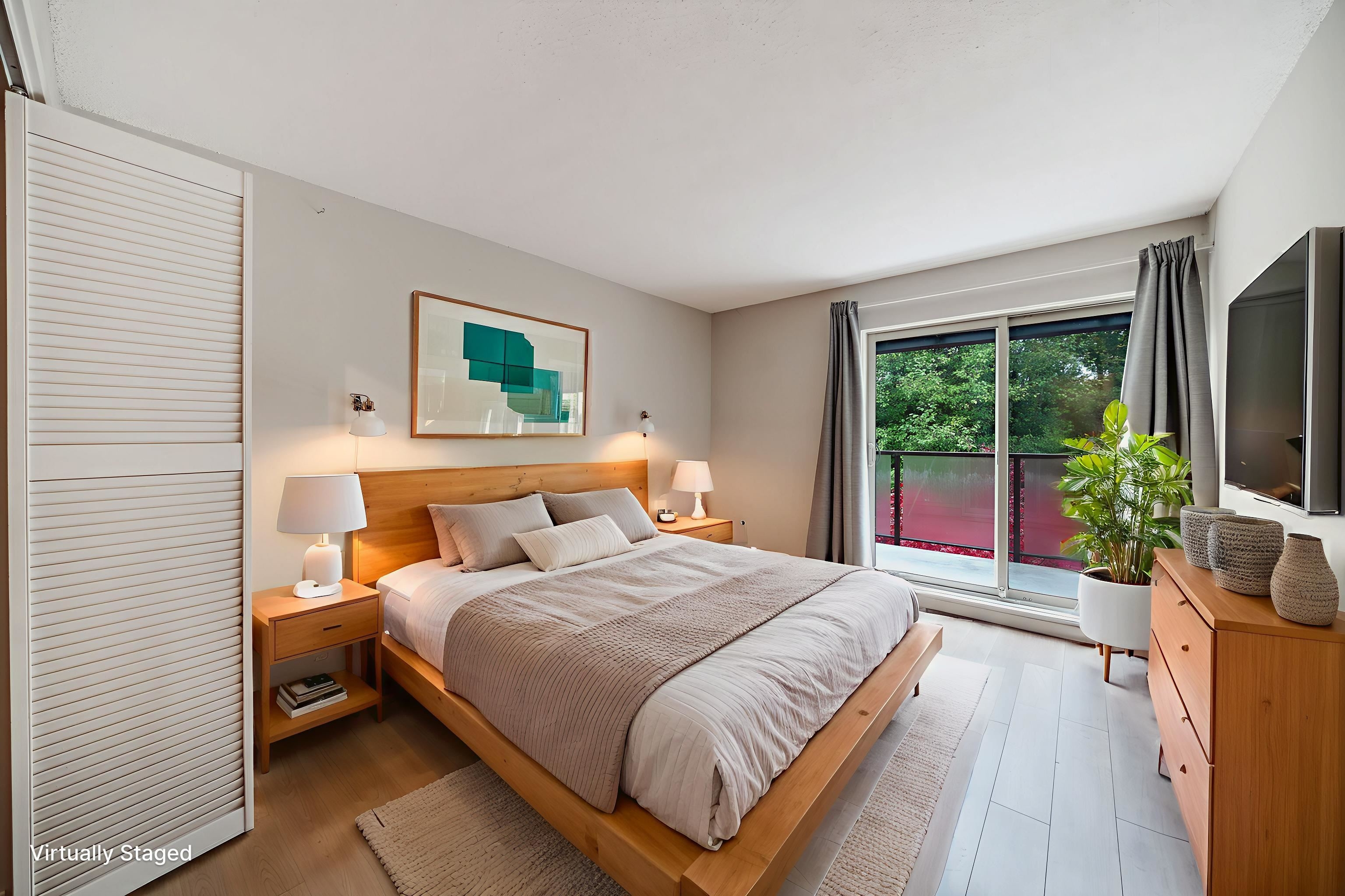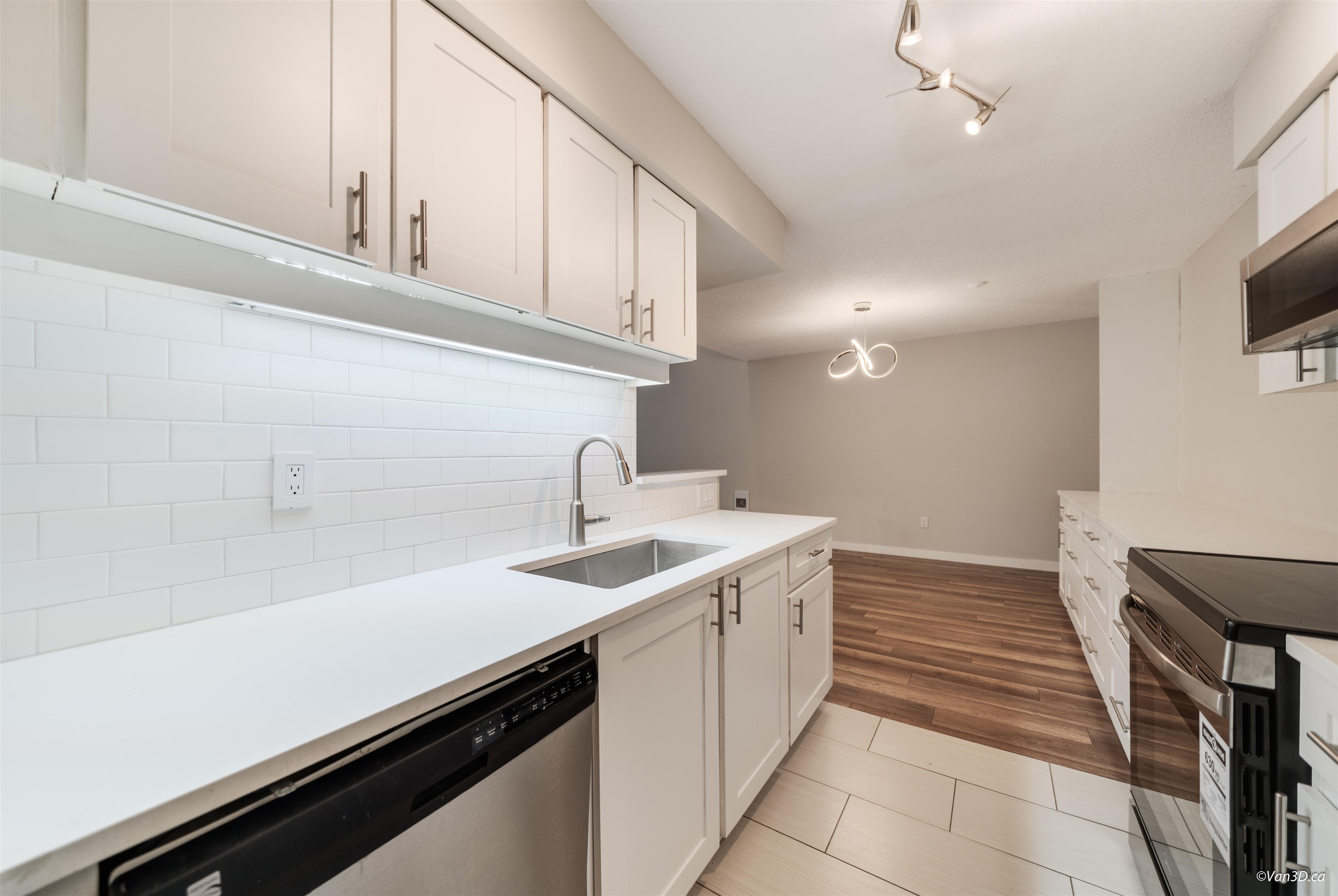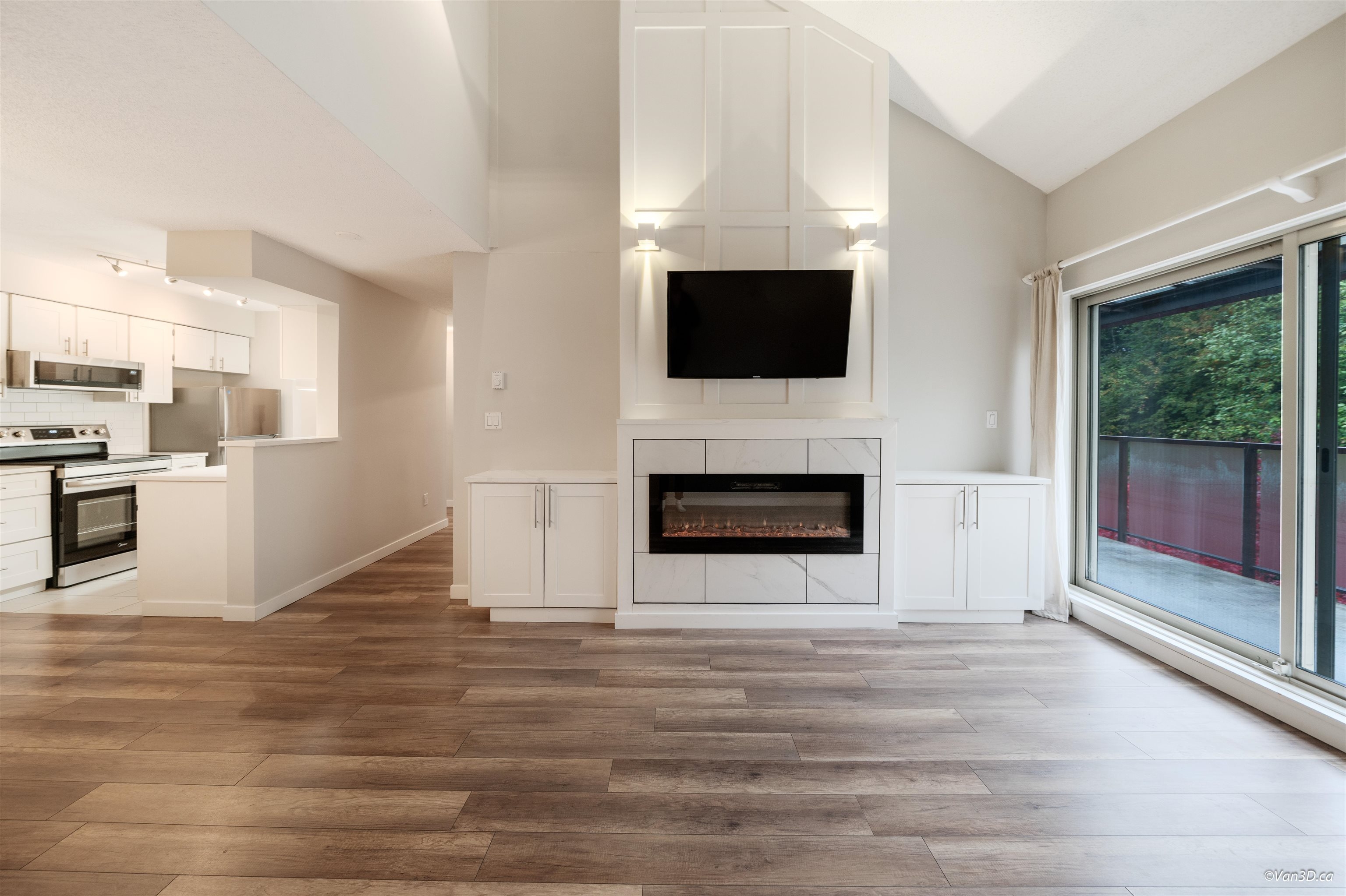 Discover this beautifully renovated 2-bedroom, 1-bath top-floor home featuring an open floor plan, vaulted ceilings, and a tree-lined view from your large 218 sq ft covered balcony. Enjoy brand-new stainless steel appliances, an electric fireplace, and modern finishes throughout. The fully rain-screened building boasts a new roof, parking, storage, shared laundry, and even a tennis court. Located beside The Amazing Brentwood Mall, with easy access to SkyTrain and schools. Rentals allowed, no pets. A rare find combining comfort, style, and unbeatable convenience. Open house Sat 22nd, 2-4pm